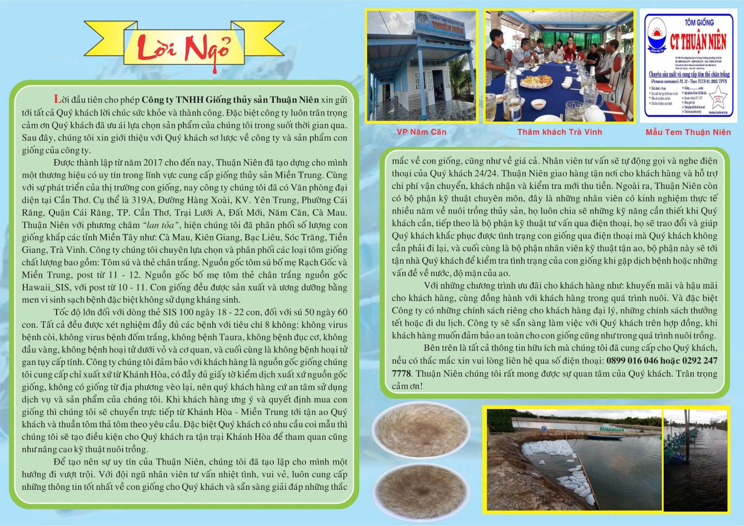 CÔNG TY TNHH GIỐNG THỦY SẢN THUẬN NIÊN với bề dày nhiều năm kinh nghiệm trong lĩnh vực phân phối tôm thẻ, sú giống có mặt khắp các thị trường Miền Tây. Lời đầu tiên cho phép Công ty TNHH Giống Thủy Sản Thuận Niên xin gửi tới tất cả Quý khách lời chúc sức khỏe và...