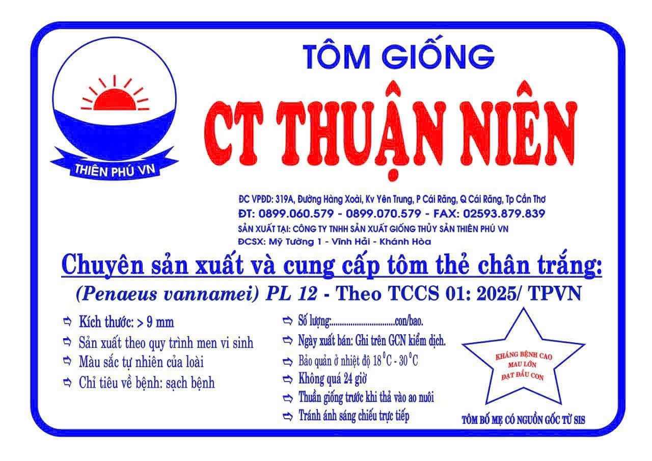 CÔNG TY TNHH GIỐNG THỦY SẢN THUẬN NIÊN với bề dày nhiều năm kinh nghiệm trong lĩnh vực phân phối tôm thẻ, sú giống có mặt khắp các thị trường Miền Tây. Lời đầu tiên cho phép Công ty TNHH Giống Thủy Sản Thuận Niên xin gửi tới tất cả Quý khách lời chúc sức khỏe và...